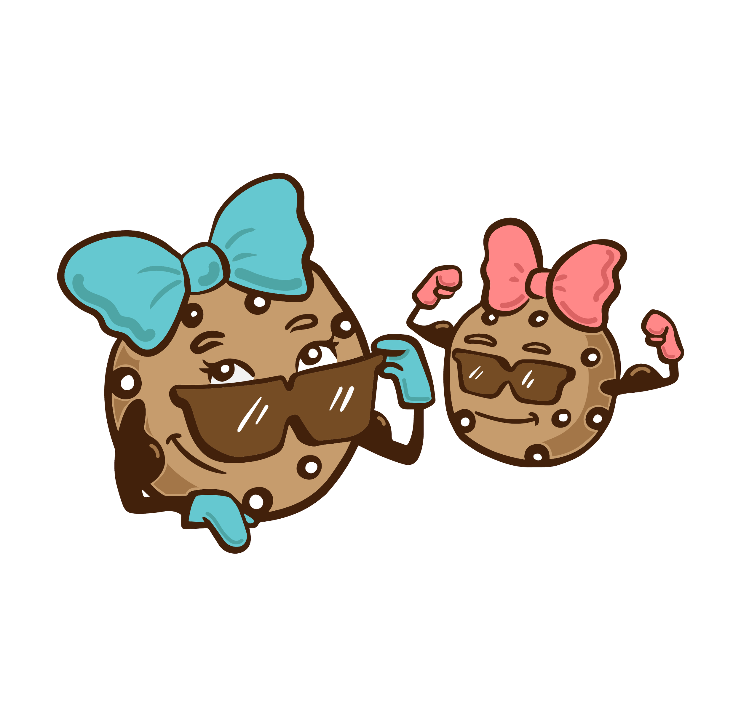 Logo for a woman-owned cookie company, with cookie mascots inspired by the owner’s daughters.